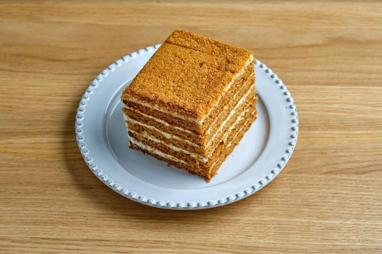Сахар песок, мед цветочный, масло сливочное, сода, яйцо куриное, мука пшеничная, соль, сливки, ванильная паста, молоко сгущенное, сметана.