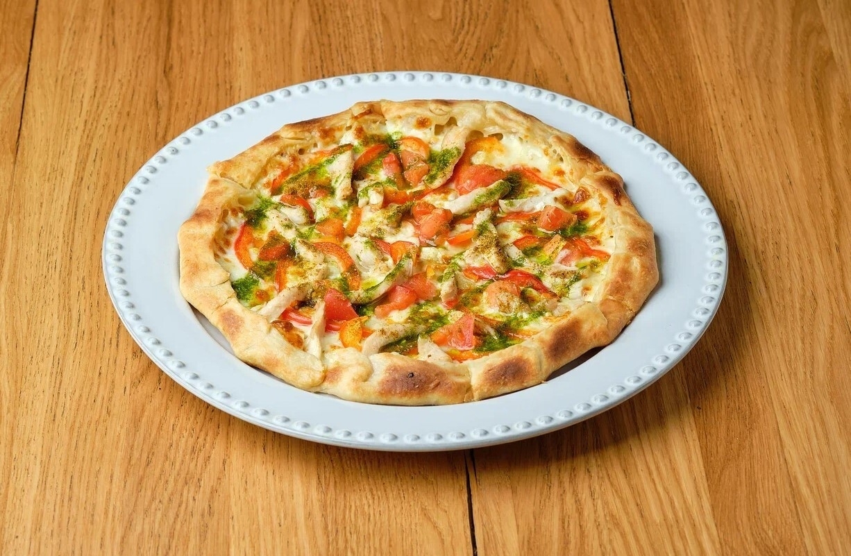 Куриное филе, томаты, копченый сулугуни, вода, соль, перец черный молотый, перец чили красный, мука пшеничная, масло растительное.