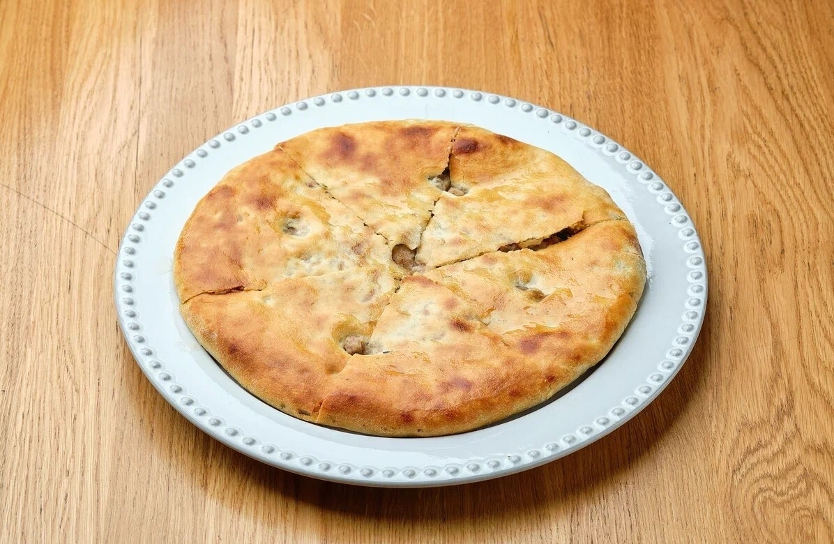 Мука пшеничная, вода, сахар песок, соль, яйцо куриное, масло растительноe, масло сливочное, сыр сулугуни, сыр надуги, бекон.
